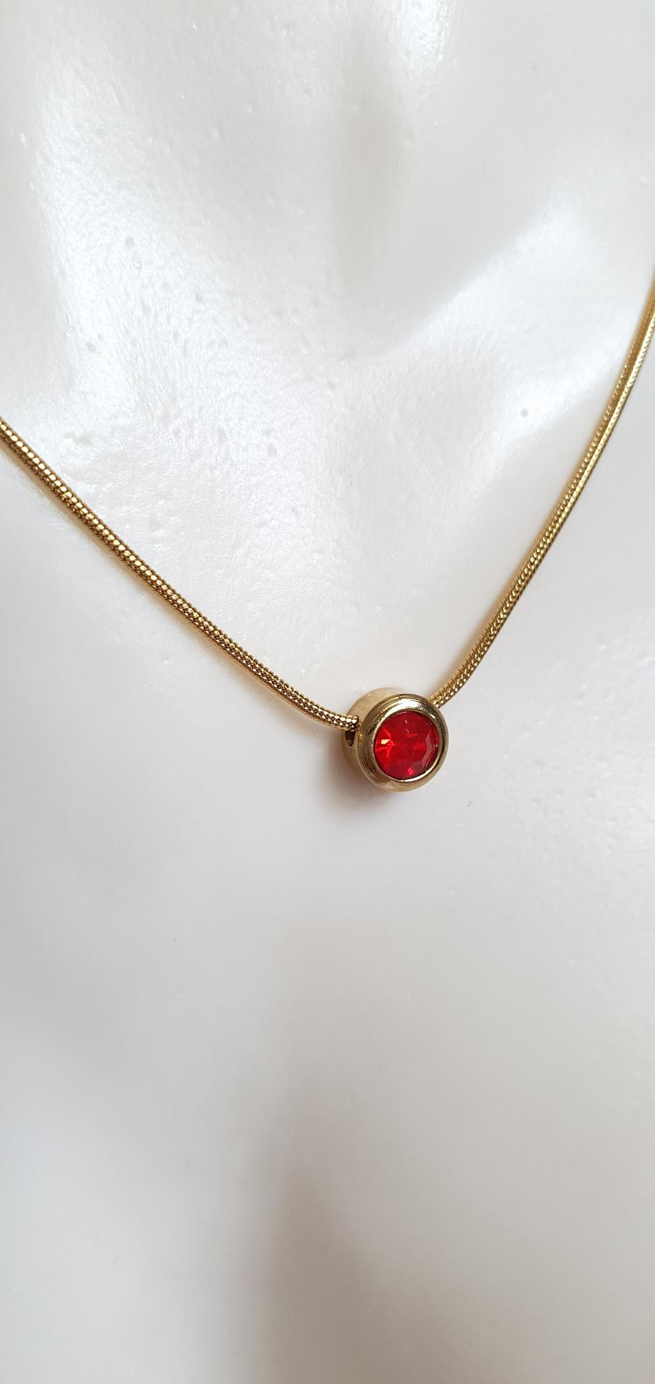 Collier chaine acier doré et pierre trèfle tourmaline rouge rubis